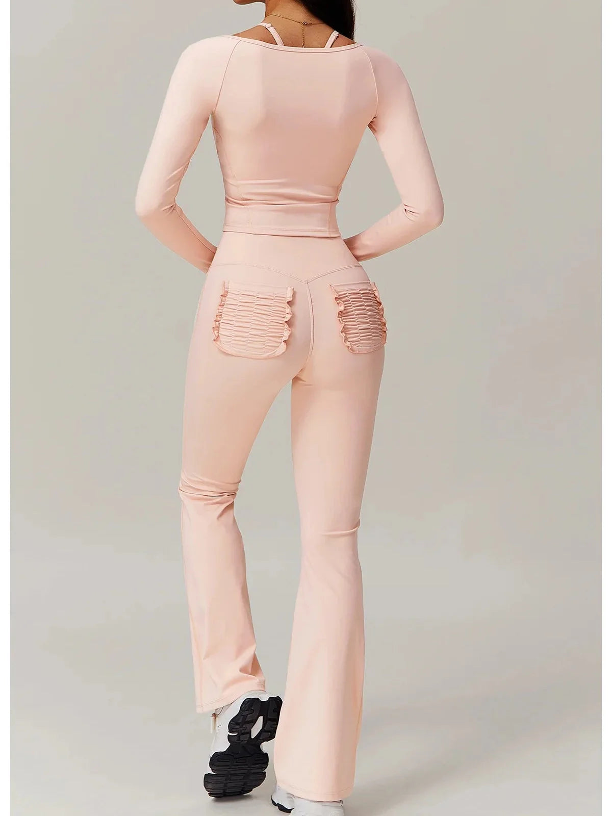 Materiał, z którego wykonano komplet RANIA, łączy w sobie właściwości elastyczne i oddychające, co sprawia, że jest idealny do intensywnych treningów. Nylon gwarantuje trwałość oraz odporność na rozciąganie, natomiast spandex zapewnia doskonałe dopasowanie do sylwetki, co pozwala na swobodne wykonywanie wszelkich ćwiczeń. Wybierając ten zestaw, stawiasz na jakość oraz nowoczesny styl.